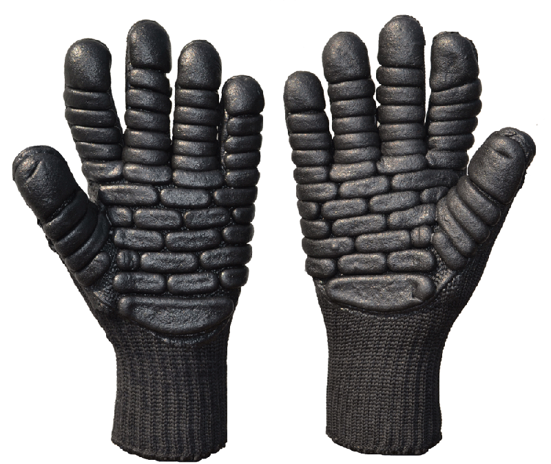 冬季在室外或寒冷場所作業(yè),可在防寒手套中附加上述裝置,同樣起到防震效果。防震手套多數(shù)為分指式,但也有連指式。