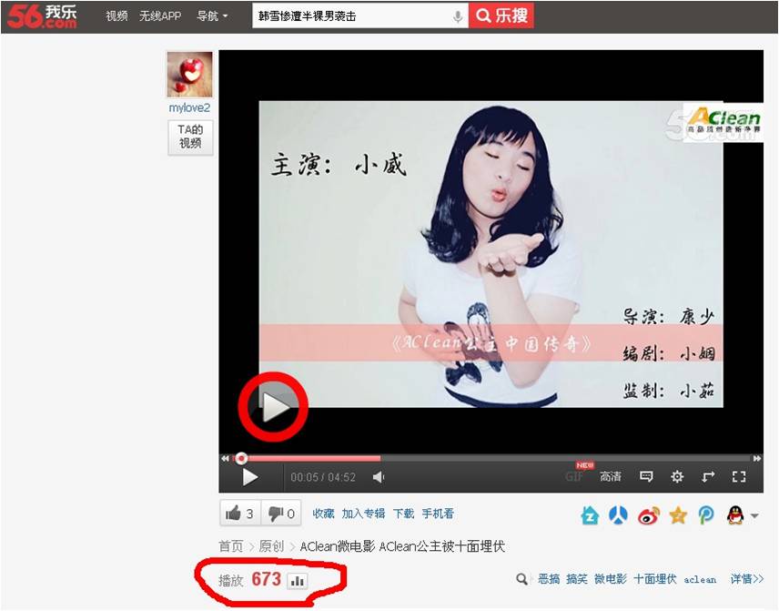 自打上周五(11月1日),AClean微電影《AClean公主被十面埋伏》首映過后,已登錄“優酷”“56”平臺的AClean微電影,點擊率驚人啊!