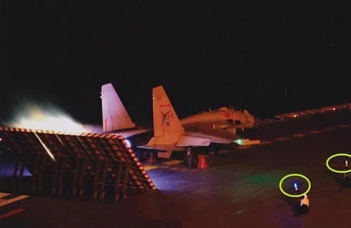 就在7月29日央視媒體再次曝光了殲15戰機夜間起降的畫面,只是這次吸引軍迷眼光的不再是殲15在甲板上一躍而起的畫面,而是飛行員手上的發光手套。