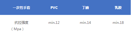 下圖是不同材質手套在正常環境中未出現老化時的抗拉強度對比數據。由圖可知,乳膠手套抗拉強度最好,丁腈手套次之,PVC手套最差。也就是說在同一環境中,乳膠手套要用更大力氣才能被撕破。